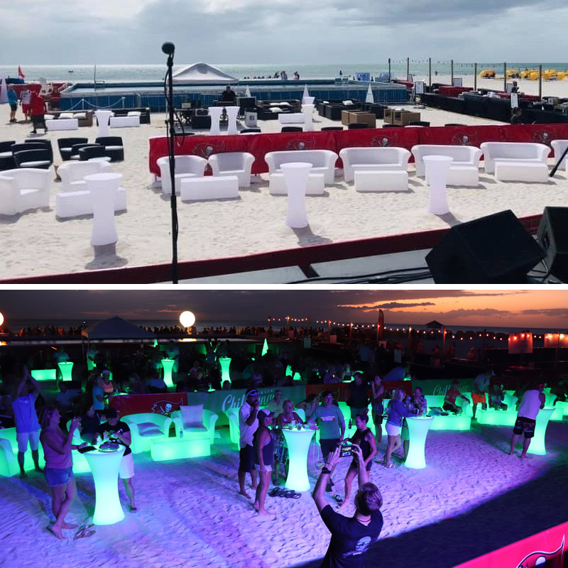 See below videos from past events in the Sarasota area but keep in mind we offer light up furniture and lounge furniture for clients all over the state of Florida!